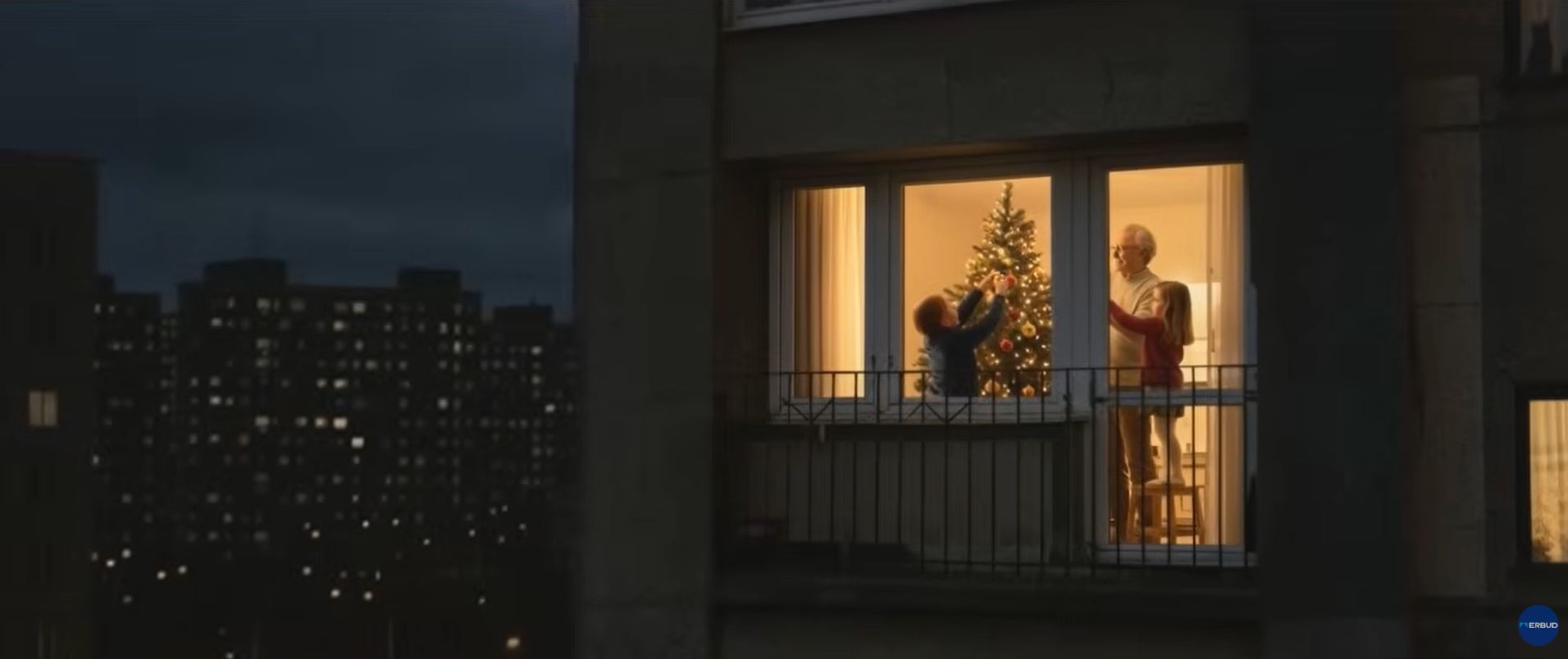 Rodzinną atmosferę świąteczną mogą zrujnować rzeczy, na które na co dzień nie zwracamy uwagi. W przygotowanym spocie świątecznym ERBUD "wygasza" jedno z łódzkich osiedli. Rodzinie pozbawionej ogrzewania i oświetlenia pomaga serwisant z ERBUD Industry mający dyżur w łódzkiej elektrociepłowni, który w wigilię przyjmuje zlecenie i sprawia, że rodzina może dalej beztrosko świętować